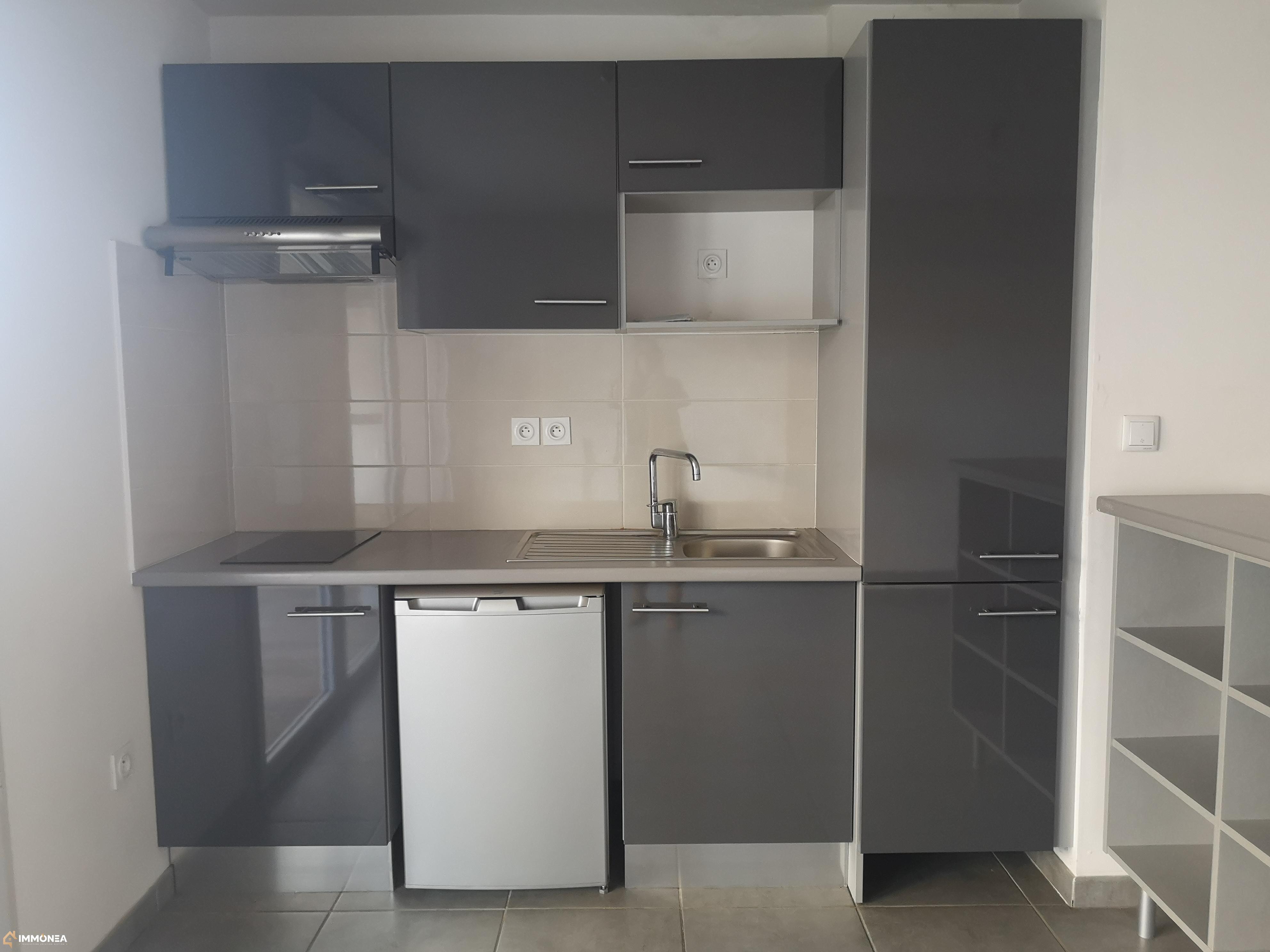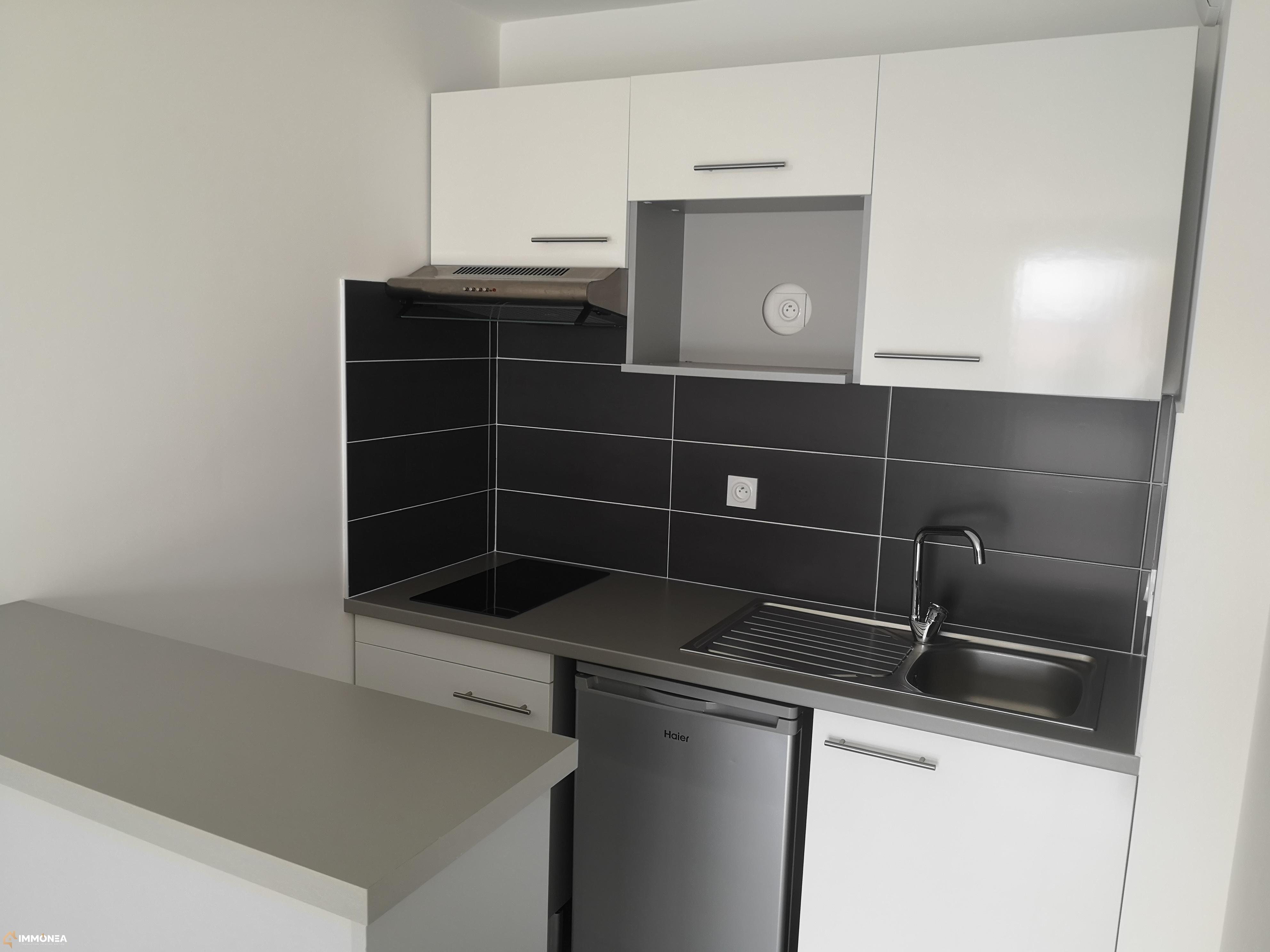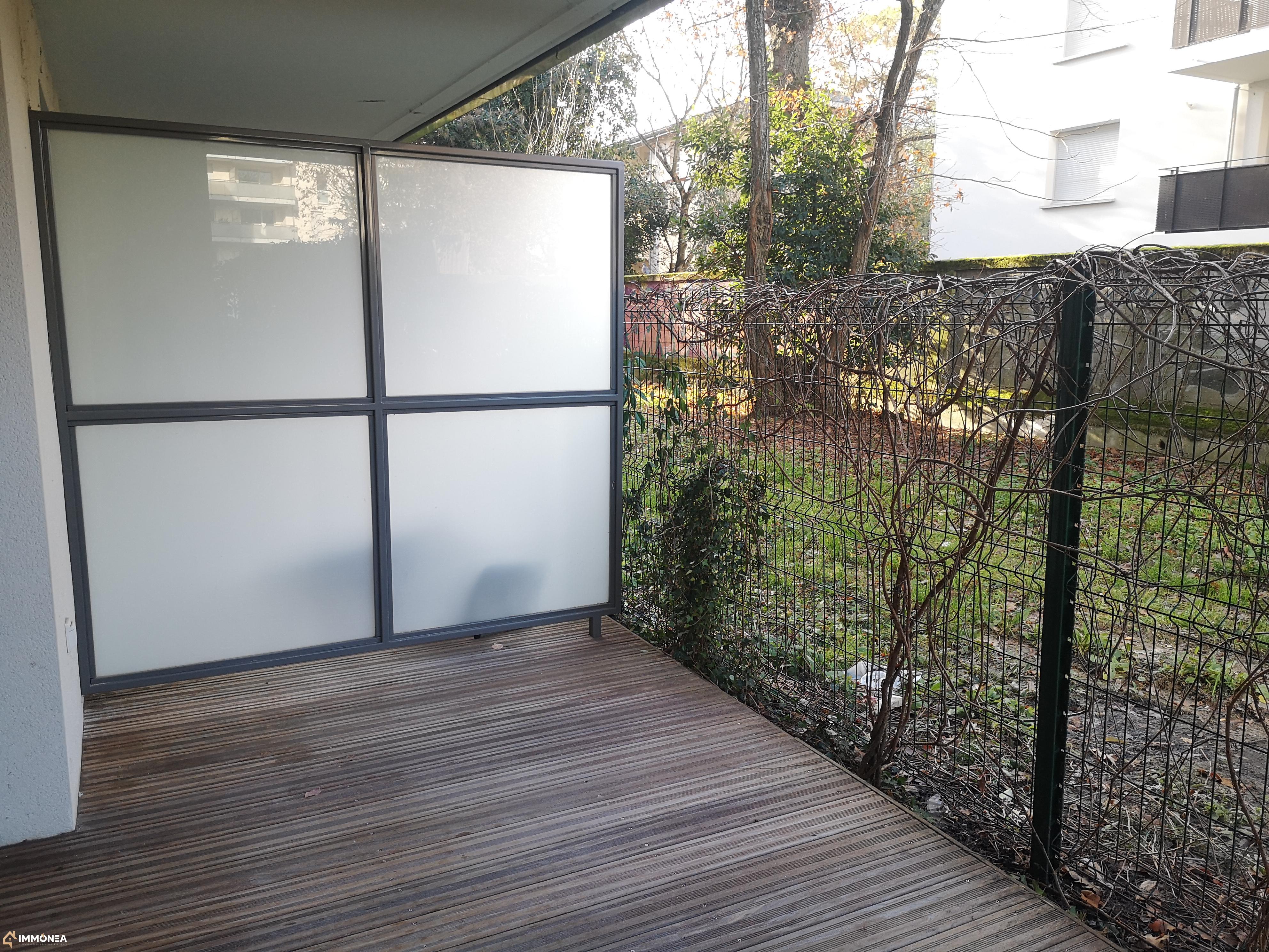 T1 récent en rez de jardin de 28,96 m² comprenant une entrée, salon/cuisine de 17 m² équipée (plaques vitrocéramiques, hotte, frigo, rangements), desservant sur une terrasse bois et son jardin privatif de 10,00 m². Salle d'eau avec douche.