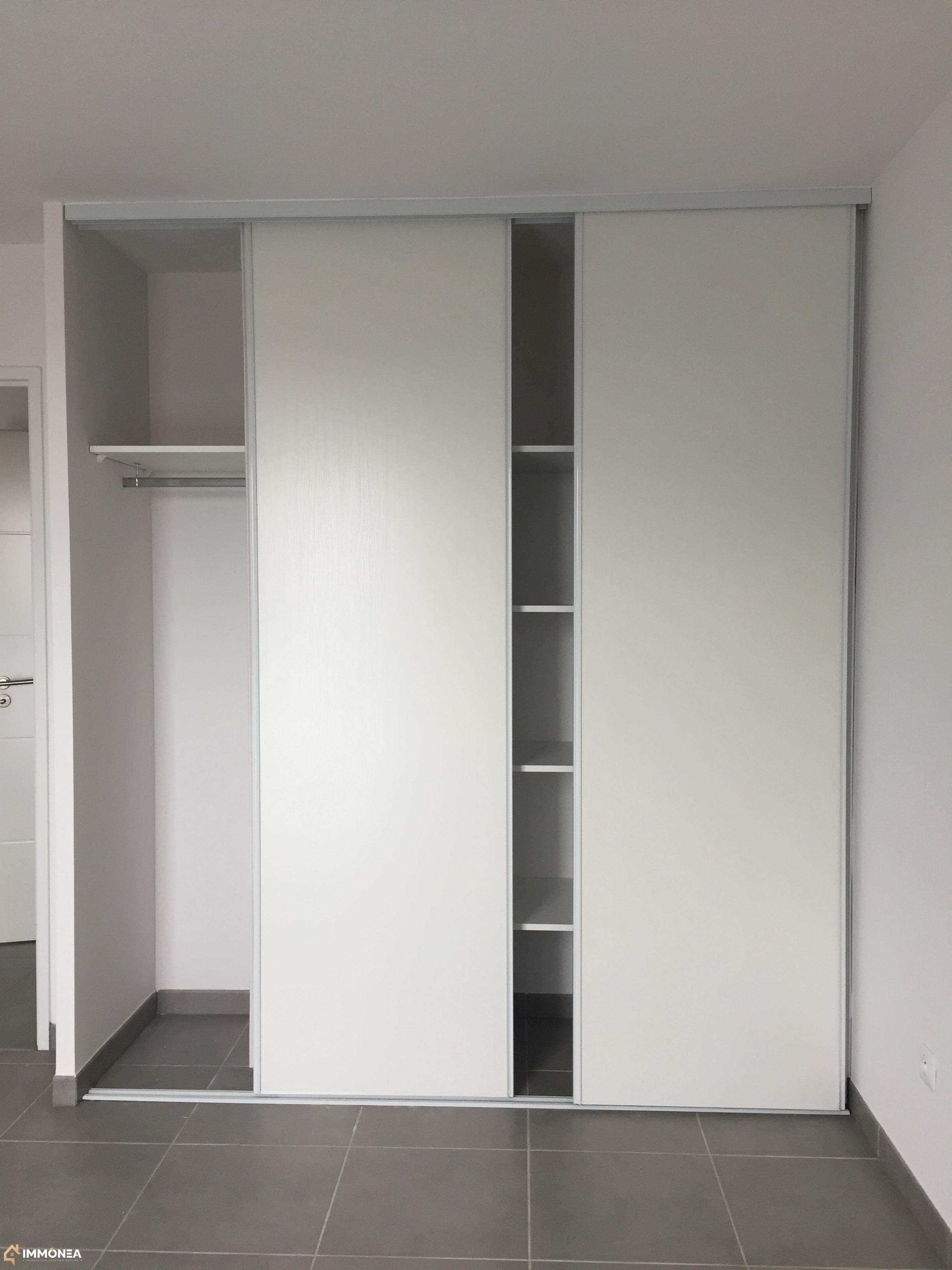 Deux chambres avec ensemble étagères et penderie.
