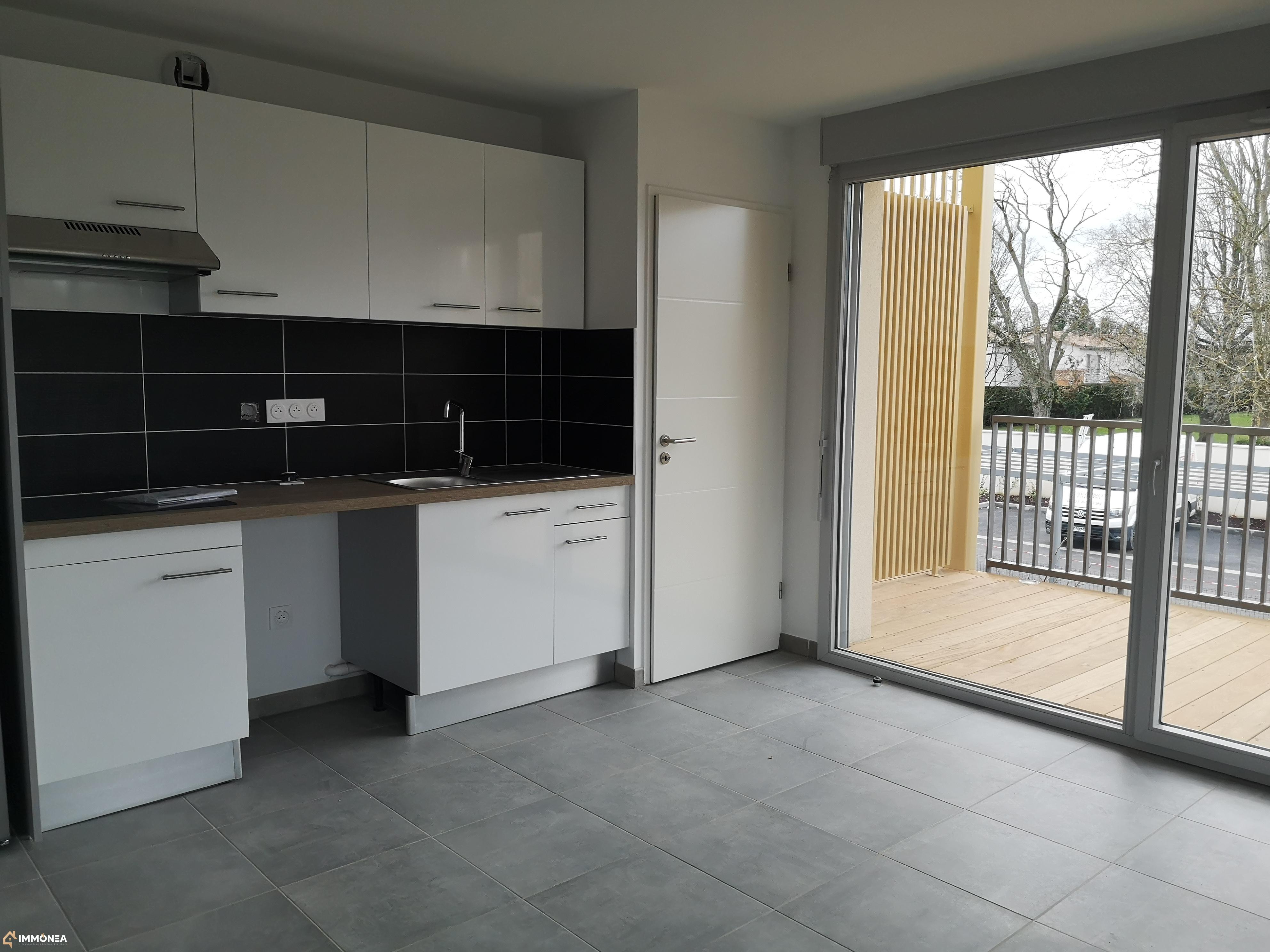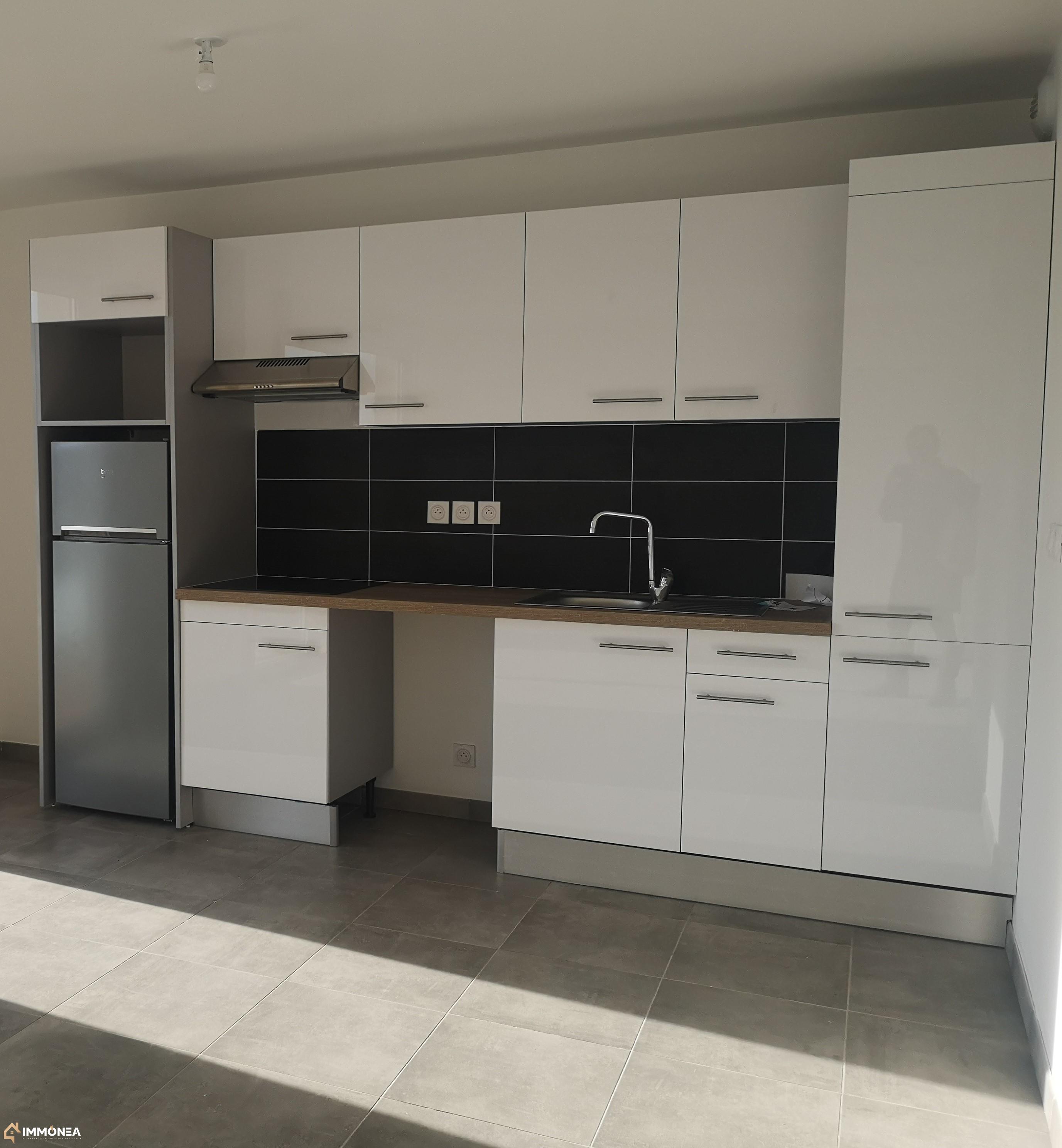 Beau T3 de 63.5m2 au 1er étage avec ascenseur, composé d'une cuisine meublée et équipée : meubles haut et bas, plaques vitrocéramique et hotte, emplacement four, et lave vaisselle, ouverte sur séjour.