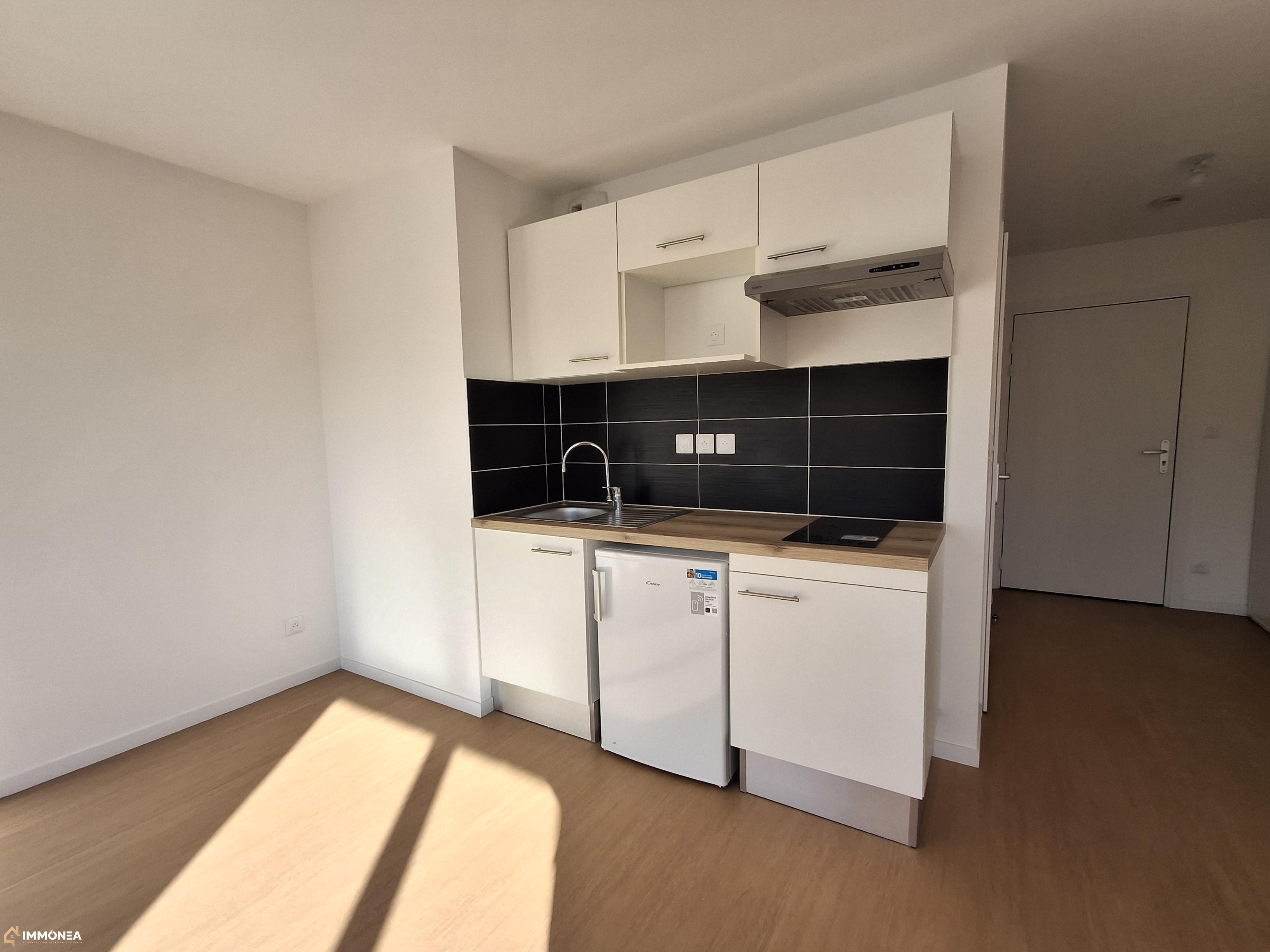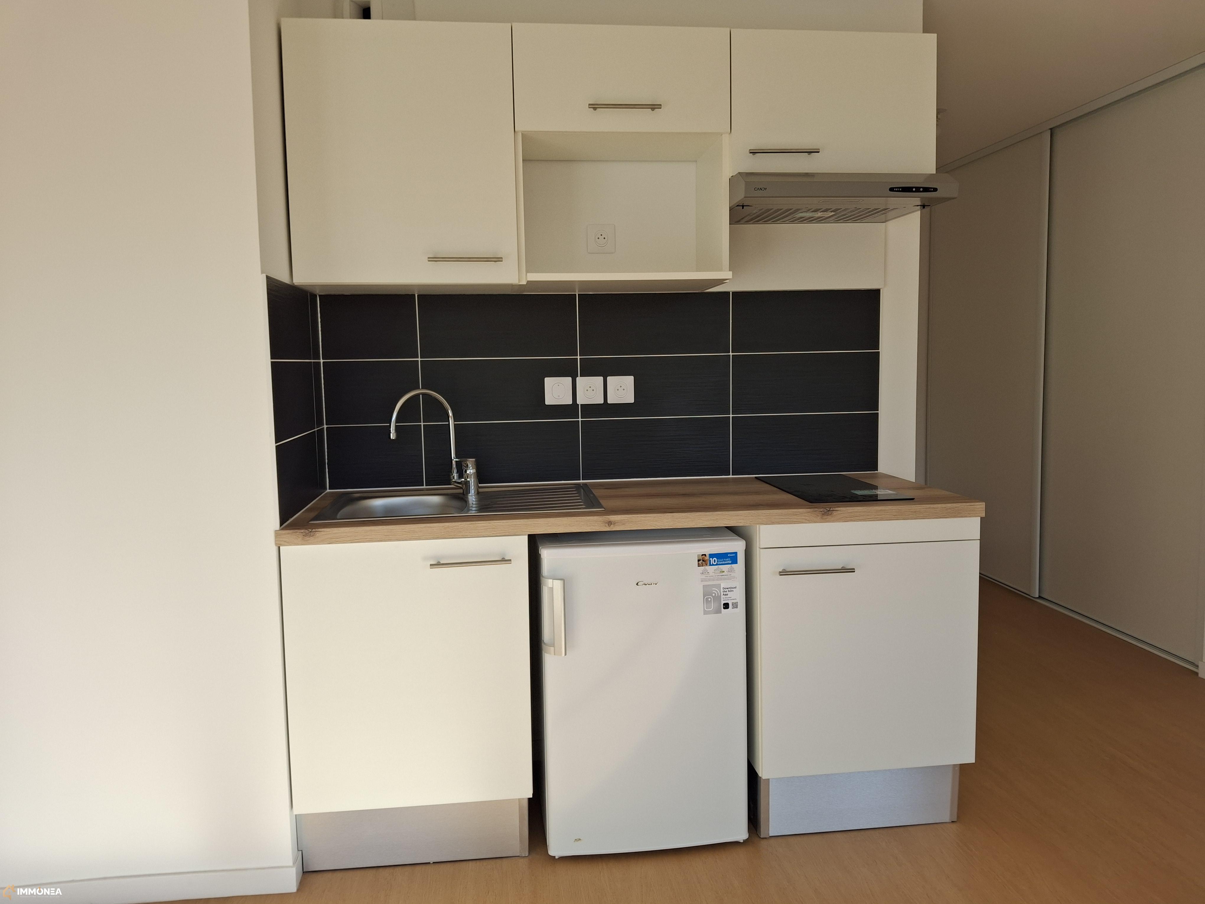 L'appartement dispose d'un beau séjour lumineux avec sa cuisine ouverte totalement équipée et aménagée (plaques, hotte et réfrigérateur). le séjour donne sur une belle terrasse en bois et son jardin de 50 m².